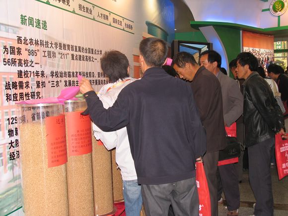 2006年11月5日,第十三届中国杨凌农业高新科技成果博览会正式开幕。在高新技术成果展馆(A馆)公司的展台前,有一道亮丽的风景尤其引人注目—那就是公司展出了几种主要的农作物:小麦、玉米、棉花、小杂粮、甘薯等优良品种和循环农业的最新研究成果,吸引了来自全国各地客人的咨询、参观。展台前前来咨询的朋友络绎不绝,纷纷了解品种的栽培技术细节和循环农业的具体使用情况。