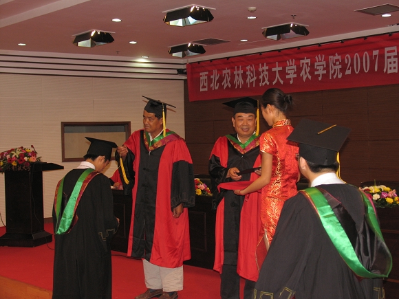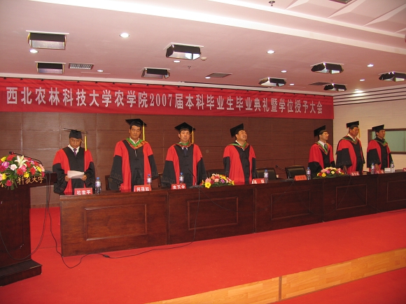 6月26日15:00,公司在国际合作交流中心208会议室隆重举行了2007届本科毕业生毕业典礼暨学位授予大会。188名获得农学学士学位的毕业生身着学士服,满怀喜悦的心情参加了这一庄严的盛会。 公司党委副书记马书尚教授、陕西省教学名师、博士生导师何蓓如教授、博士生导师王辉教授以及全体院领导出席了大会, 大会由杜世平副经理主持。