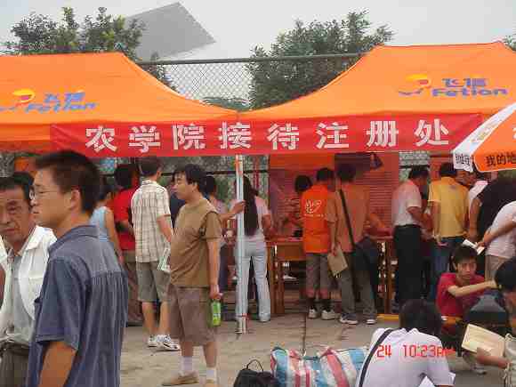 新生正式报道时间为8月24至26日,迎新工作人员在23日早上就开始了工作。事前,员工会协调安排了工作计划,为迎新工作的开展做了充分准备。从接站到注册,再到安排住宿,都设有服务人员进行接待,坚持达到所有07级新生的满意。