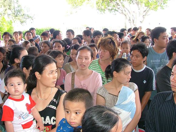 受难同胞等待撤离