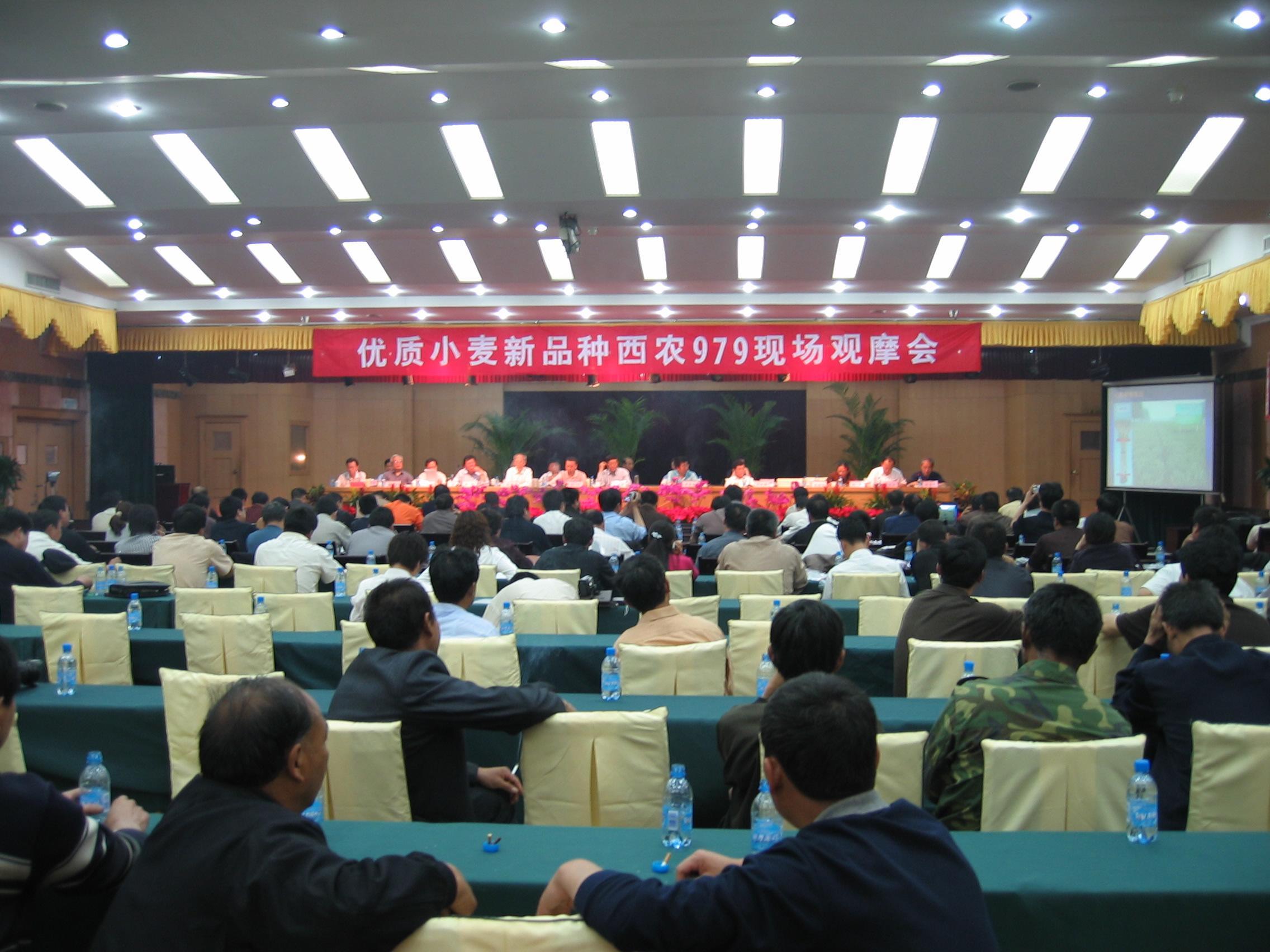 由公司王辉教授主持培育的小麦新品种“西农979”在黄淮麦区经过三年区试,于2005年8月通过国家新品种审定,在国家粮食贮备库下属的河南金粒种业集团大力推广下,目前在河南、陕西、安徽、苏北、鲁南等黄淮麦区示范种植100多万亩。
