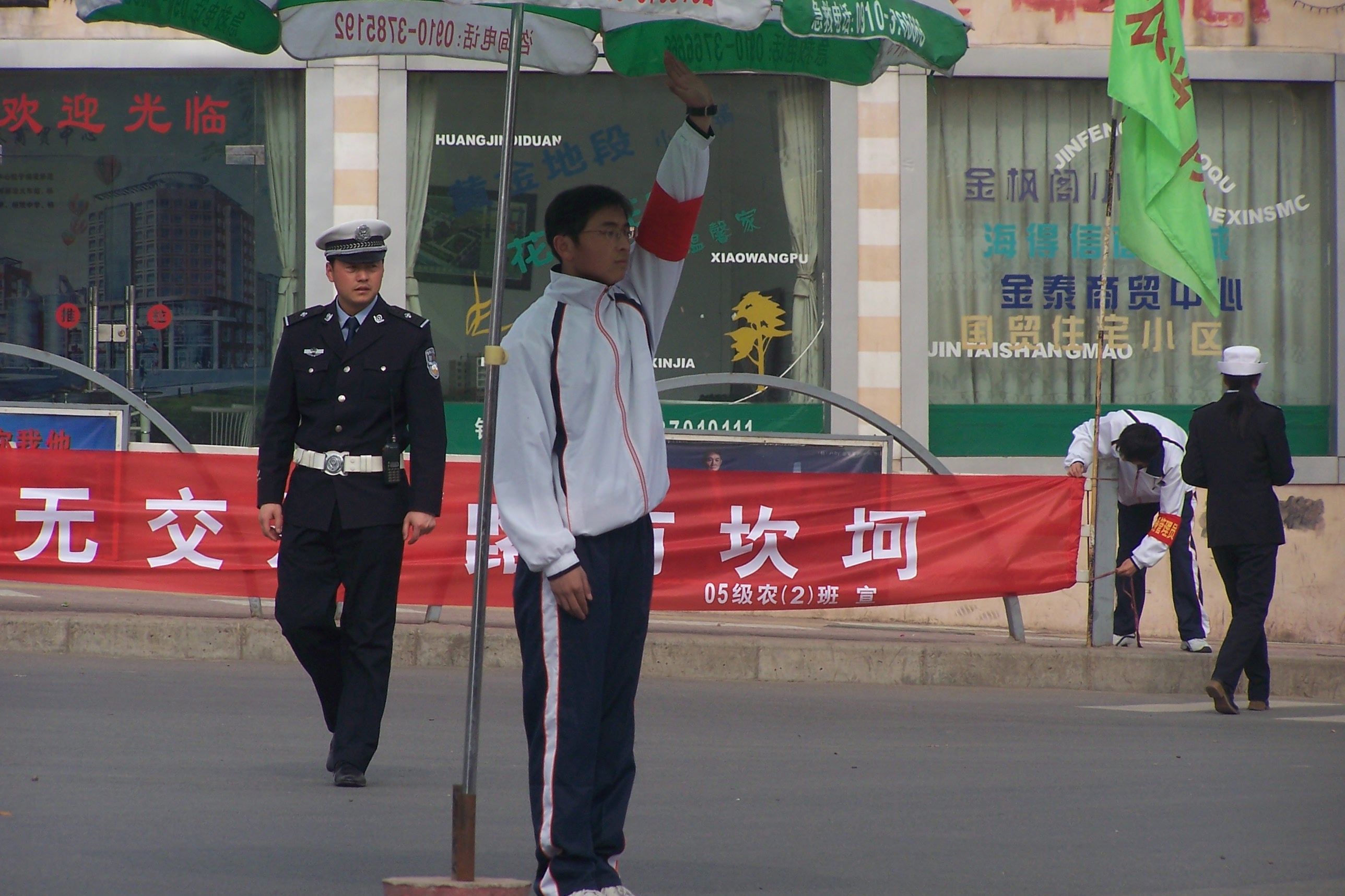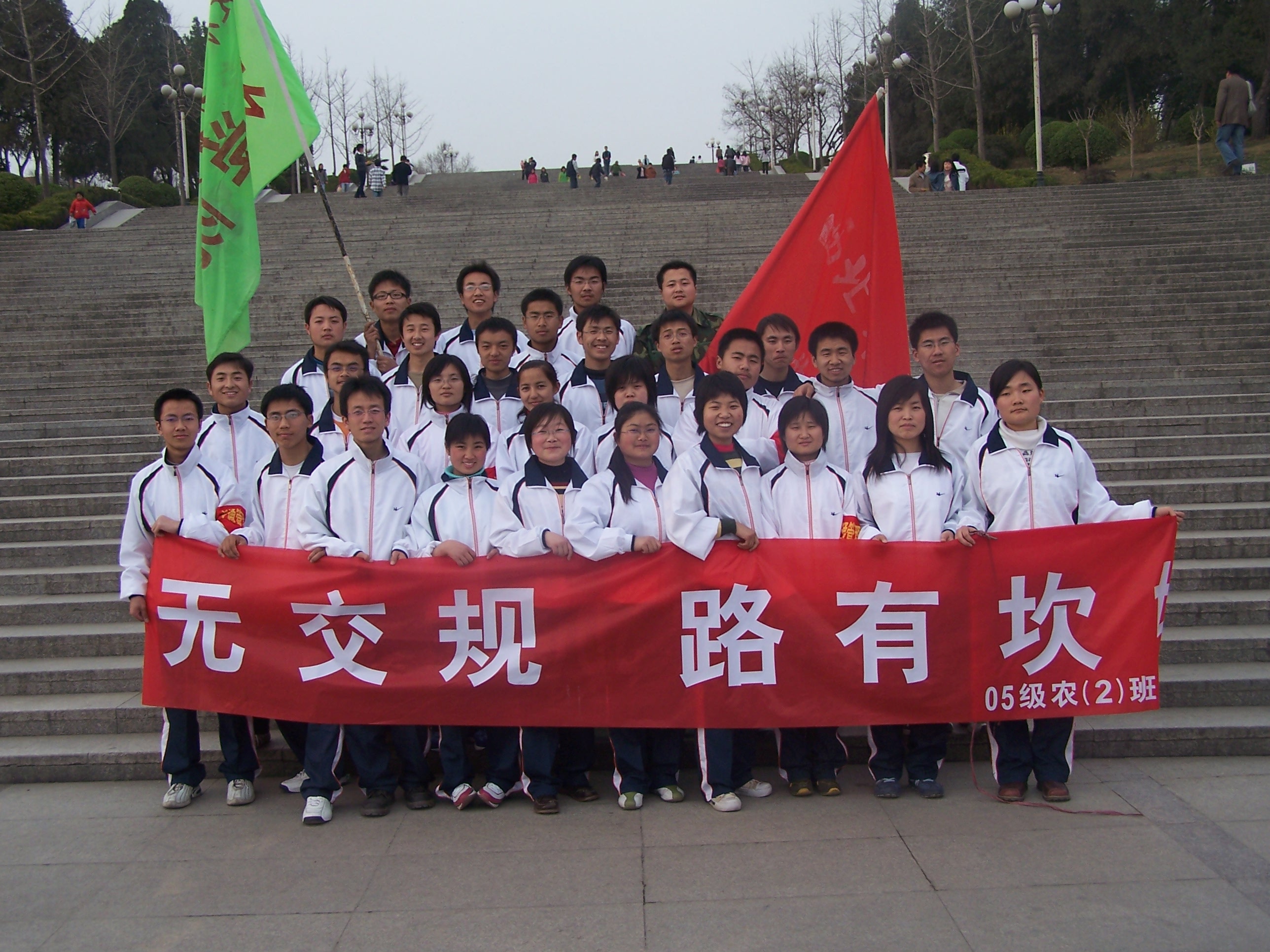 3月10日-3月11日,公司2005级农学(2)班全体成员在杨凌区四大交通要塞进行了题为"维护示范区交通秩序,珍爱生命,从我做起!"大型社会实践活动。本次活动旨在通过对交通法规的宣传,使"交通安全在我心"的基本目标都能深入人心;同时通过全班同学亲自体验(在十字路口指挥交通),体会交警的辛苦,培养自觉遵守交通法规的良好习惯。活动之初,首先由杨凌交警支队的两名同志为同学们做了培训,然后同学们分散在杨凌主要交通要道执勤。在校内也以宣传板、大字报、校园广播、校内传单等形式进行了广泛宣传!杨凌电视台进行了全程跟踪报道,整个活动取得圆满成功。