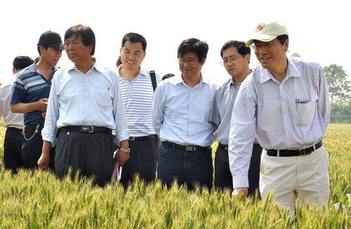 在小麦原种圃、小麦新品系鉴定试验田,孙其信向公司有关专家了解了小麦品种在耐旱、抗冻、抗病、抗倒伏、早熟性、千粒重、成穗率、产量等方面的表现情况。孙其信希望专家们通过考察、观摩,取长补短,潜心攻关,选育出优良的小麦品种,为推进农民增收、农业科技创新和粮食安全作出贡献。