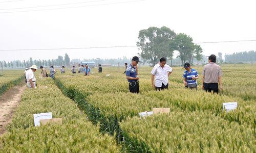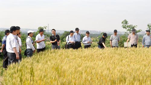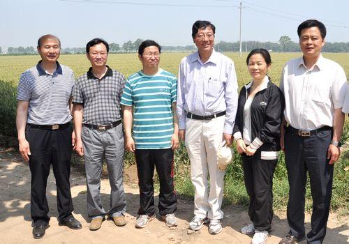 19日上午,孙其信一行在河南省粮食局副局长乔心冰,豫粮集团董事长张培贤,荥阳市副市长王智明、农业局局长王长青,金粒种业股份有限公司总经理黑更全等陪同下,来到位于河南荥阳市的金粒种业公司小麦品种示范园进行实地考察观摩。在“西农979”、“西农509”等小麦品种高产示范田,孙其信一行听取了工作人员关于示范田建设、小麦品种栽培管理等方面的情况介绍。“西农979”今年在荥阳市示范面积30000亩,在河南推广种植面积已超过700万亩,是河南省三大小麦种植品种之一,也是全国5大小麦种植品种之一。“西农509”今年在荥阳市示范面积6000多亩,在高产、稳产、品质、早熟性等方面表现良好。