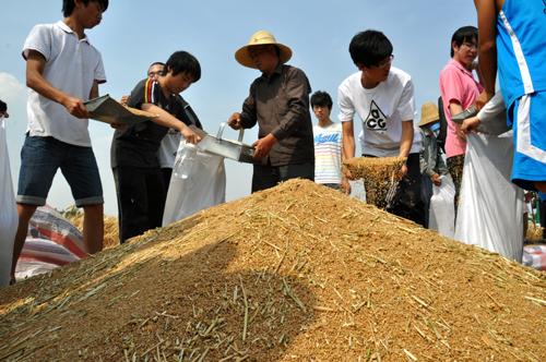 专家组依据农业部《全国粮食高产创建测产验收办法(试行)》对高产展示田进行实产收获,在0.8926亩的试验田里,收获的杂交小麦新组合西杂13号鲜重608.32公斤,水分9.3%,去掉0.2%的杂质,平均亩产达到705.37公斤,比张改生教授课题组此前选育的杂交小麦新品种单产上了一个新台阶。