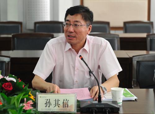 孙其信在总结讲话中展望了世界小麦生物学研究的前沿和关键领域,强调小麦创新平台就是要建立一种有效的组织模式,以做大科学的魄力、出大成果的决心、搞大协同的思路,在未来10到20年使我国由小麦生产大国成为小麦研究强国。他指出建设方案中所确定的小麦基因组学、小麦多倍化遗传和进化机制、小麦杂种优势形成机理及其利用途径等10个研究方向就是平台今后研究工作的重点;下一步要实质性地进行有组织的协同创新,研究的资源、设施、信息实现开放共享,高度重视在协同创新机制下提升人才培养质量;按研究方向设首席科学家岗位,开展有效的国际合作,同时拟定共建协议。他希望与会专家和各共建单位齐心协力,为中国小麦研究事业走向世界作出积极贡献。
