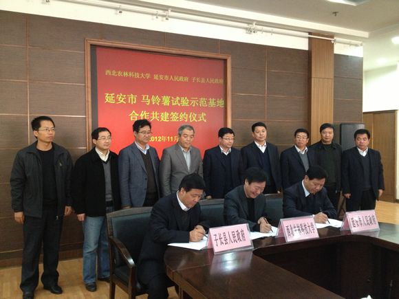 11月21日上午,365英国上市公司官网与延安市人民政府、子长县人民政府合作共建“365英国上市公司官网延安市马铃薯试验示范基地”的签约仪式在校国际交流中心举行。基地同时加挂“延安市马铃薯试验示范基地”和“子长县马铃薯试验示范基地”牌子。