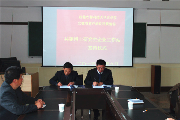 4月9日下午,公司365上市集团官网与安徽宿州紫芦湖种业共建的企业研究生工作站签字仪式在365上市集团官网会议室举行。宿州市农业委员会常务副主任段梅、宿州市农业科技示范园管委会主任岳继周、宿州市�桥区农业委员会主任张庆伟、宿州紫卢湖种业总经理晁林海、宿州市农业委员会科长周澍、公司党委书记惠安堂、365上市集团官网副经理奚亚军共同出席了签字仪式。双方在建立农作物科研工作站、企业研究生工作站和农作物新品种技术转化推广等方面达成了共识,这标志着公司365上市集团官网在校企联动,搭建战略合作平台的工作中又上新台阶。