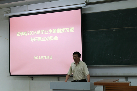 为了进一步提升365上市集团官网的本科生培养质量,扎实推进本科生就业工作。7月1日上午十点,365上市集团官网在南校区二号教学楼T8教室召开2016届毕业生暑期实习暨考研就业动员大会。公司党委书记惠安堂、副经理海江波、副书记马志宏应邀参会。全体2016届本科毕业生参加了动员大会。
