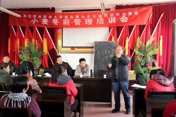 为了提高公司陇县旱地农作物试验示范基地在当地的影响,更好地发挥基地在教学、科研和社会服务方面的平台作用。12月5日,陇县旱地农作物试验示范基地针对当前小麦生产中面临的问题,在陇县东风镇凉泉村举办小麦冬前管理技术培训会。当地村民79人和农技部门技术人员参加了培训。