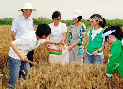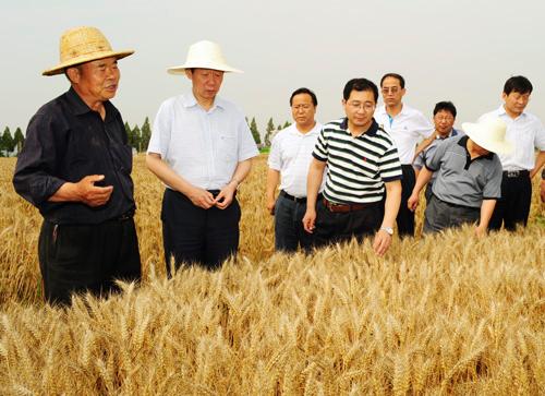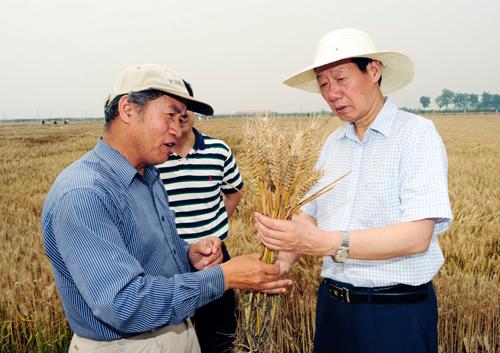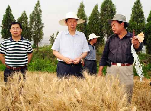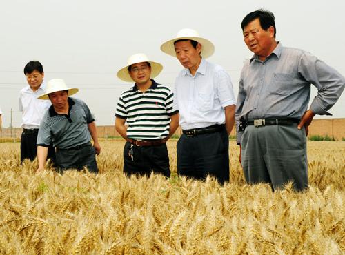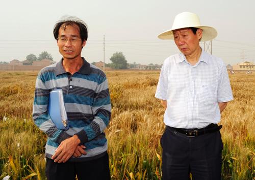 孙武学董事长察看刘曙东教授的小麦育种试验