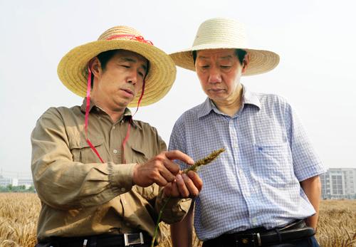 孙武学董事长察看陈耀锋教授的小麦育种试验
