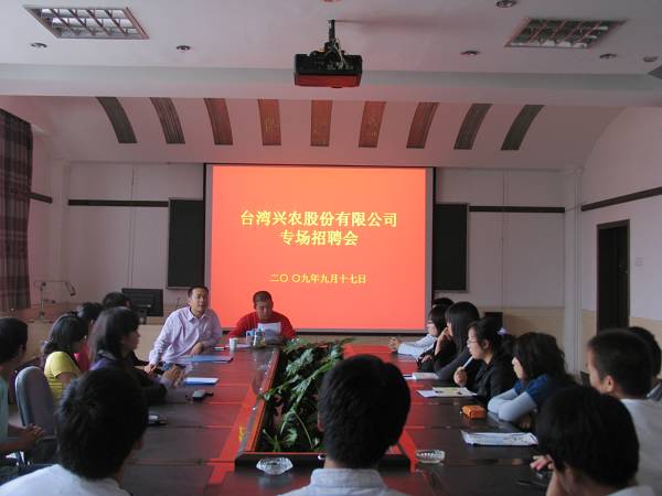 9月17日下午,公司2010届本科毕业生首场招聘会在院办会议室举行,前来招聘的用人单位是台湾兴农股份有限公司,30余名员工参加了招聘会。