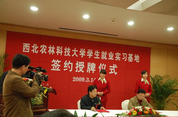 为了搭建人才智力资源共享平台,实现人才培养和社会需求的有效对接,3月14日下午,公司与甘肃黄羊河农工商集团签订员工就业实习基地,这是公司继杨凌秦丰农业高科技股份有限公司、杨凌中农高科技股份有限公司、甘肃省酒泉市人事局、南阳市农科所后新建立的第5个员工就业实习基地。基地签约仪式在杨凌国际会展中心隆重举行,公司党委书记高翔与甘肃黄羊河农工商集团党委副书记李松山分别代表各自单位签订协议,公司党委副书记徐养福出席会议并发表重要讲话,最后为基地授牌。