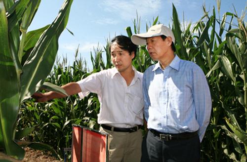 毛建昌教授向孙武学董事长汇报玉米新品种的选育