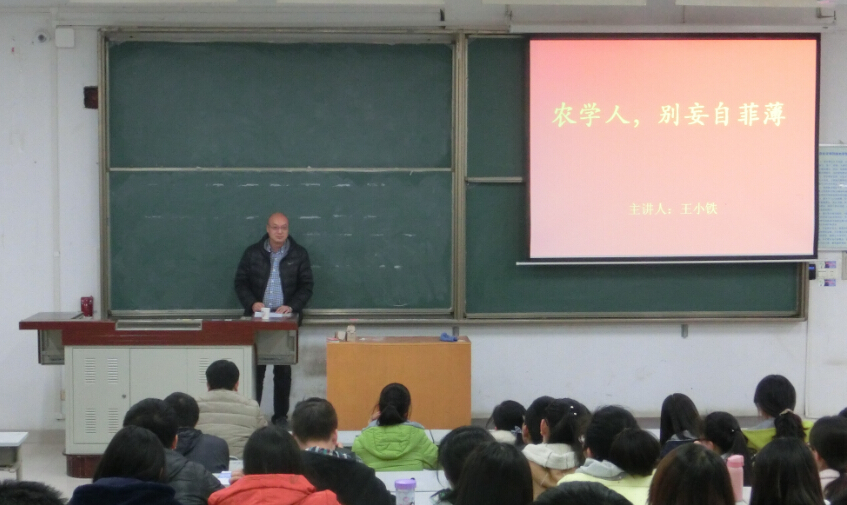 2015年12月3日晚在8T08教室, 365上市集团官网2015级员工聆听了由员工王小铁带来的精彩报告——“农学人,别妄自菲薄”。出席本次报告会的还有海江波副经理,报告会由辅导员杨华主持。