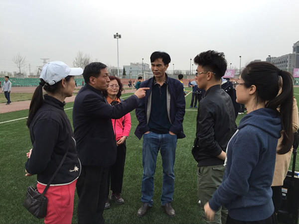 3月29日下午,公司党委书记惠安堂、副书记马志宏、副经理张蓉来到北校区田径场观看员工春训,慰问积极备战校运会的春训运动员,为同学们加油鼓劲,送上公司的关怀。