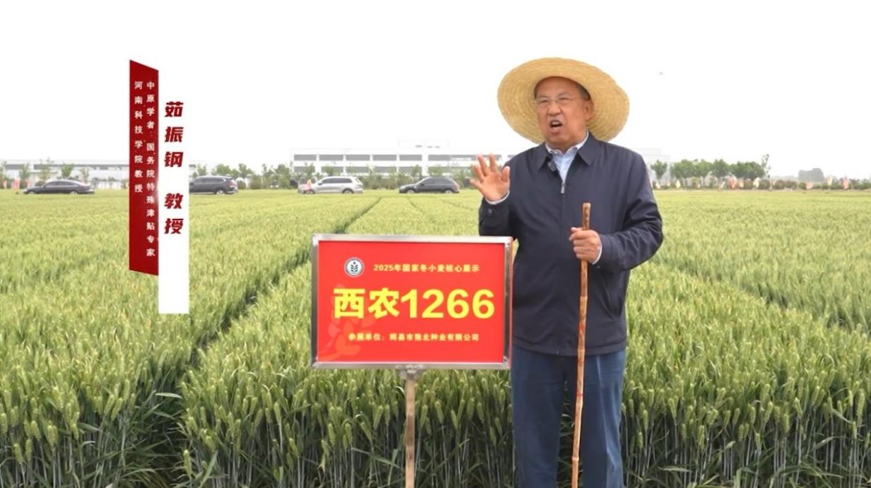 茹振钢教授深入田间对品种进行专业评价,“西农1266品种抗倒性强、穗数多,是大穗、多穗兼顾的类型,是高产品种当中的骨干类型”。这一评价精准概括了该品种的突出优势,进一步凸显了其在小麦育种领域的重要地位。