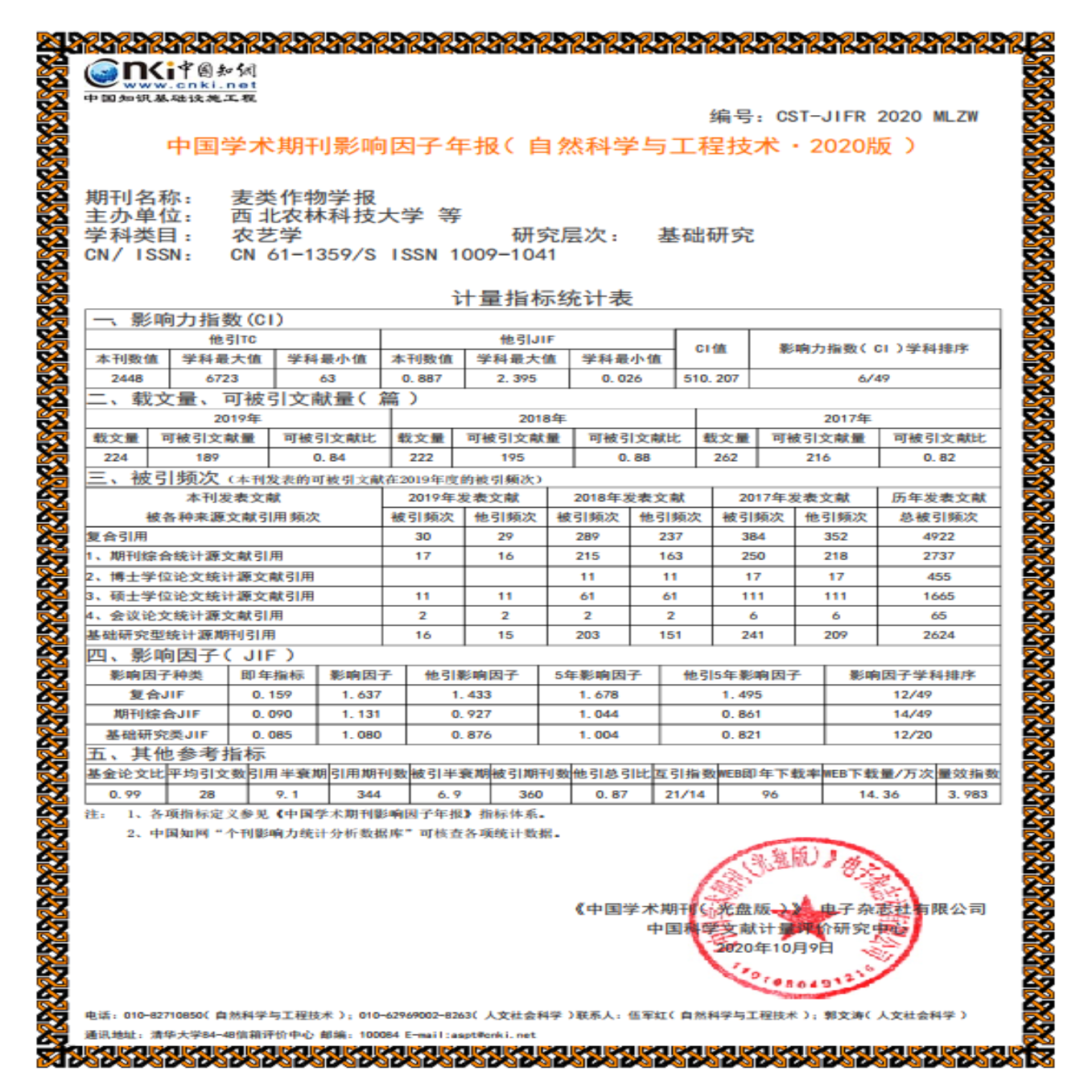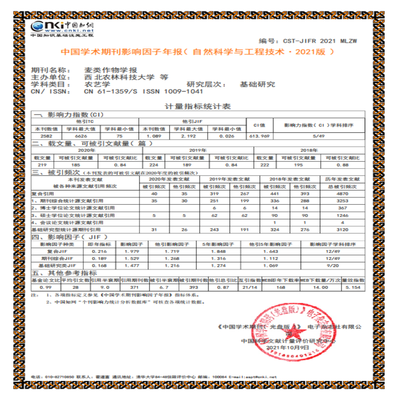 《麦类作物学报》2021年各项核心数据详情如下: