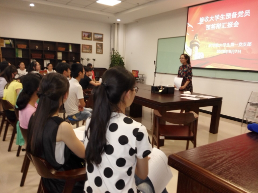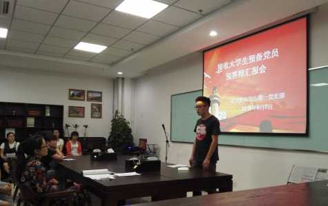参加预答辩的9名入党积极分子按照抽签顺序依次进行答辩。答辩内容包括5分钟的自我陈述、引导员补充介绍、答辩考核组成员及在场同学提问等。在提问环节中,大家就党的基础理论知识、时事政治、员工工作等方面对答辩者进行了考察,最后由党支部组织委员和宣传委员进行成绩核算。利用统计分数的时间,沙老师带领大家学习了《中国共产党章程》。本着公平、公正、公开的基本原在现场公布了入党积极分子的答辩成绩。本次拟发展的预备党员准备充分,考核组成员评分公正,预答辩会议在大家的掌声中落下帷幕。