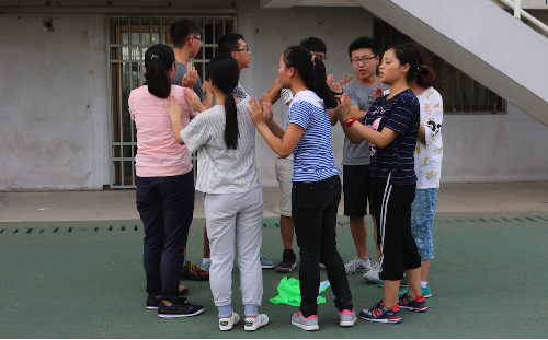 经典的游戏固然有其经典的道理,三组二十七个人的喊声,响彻整个田径场。“我觉得这个游戏的规则不是很难理解,难就难在我们之间的配合,越是整齐划一越可以事半功倍。”郑婉辰同学说,“几个人不同的击掌频率,不同的语速最后要做到整齐划一,少不了短时间的联系和大家的相互配合。”一遍一遍的练习,从参差不齐到整齐划一,这其中浸润着同学们的汗水,汗水浇灌着不屈茁壮的成长。相信最后同学们大声喊出“我们是最棒的”的时候,不屈的精神以及这句话已经深深地扎根在同学们的心底,枝繁叶茂。
