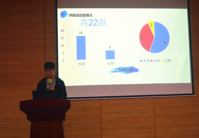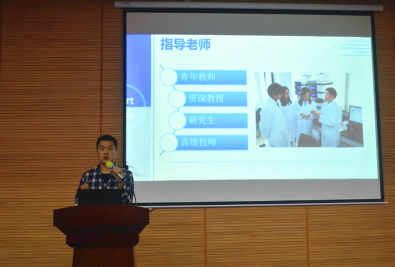 14级国家级科创项目带头人赵德强结合自己在做科创的过程中所遇到的问题以及所取得的心得与全体同学进行交流。赵德强根据自己的经验,在组队、选择导师、项目申报和项目开展这四个方面为同学们带来了许多宝贵的信息。从队友的选择及利弊,到导师选择的优缺点;从项目申报书的撰写到项目开展过程中的点滴,赵德强与大家敞开心扉,将自己所知道的倾囊相授。力求让大二的同学们在科创方面站在一个高的起点,少走弯路。