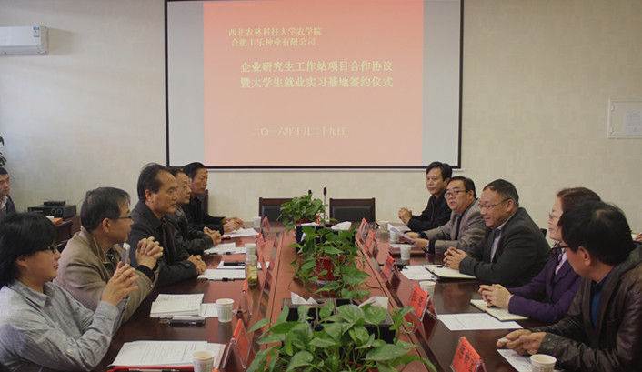 签约式由经理助理冯永忠教授主持,张海成副书记代表公司致欢迎辞。王浩波总农艺师代表合肥丰乐种业股份有限公司,从发展理念,科研现状以及对人才需求等方面介绍了公司的基本情况。