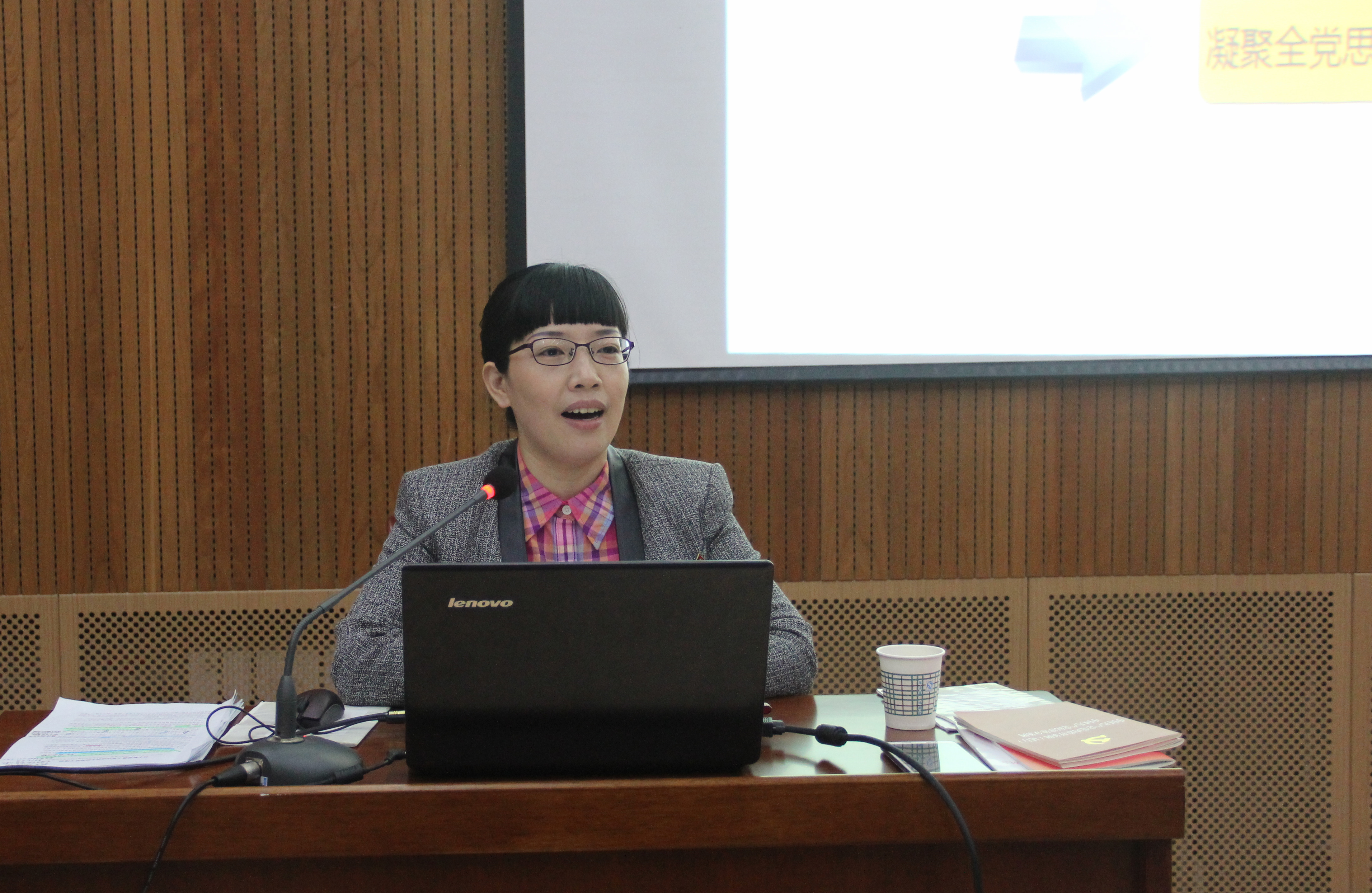 李娜老师开宗明义,告诫大家“打铁还需自身硬”。党的十八届六中全会向全社会传达了全面从严治党的鲜明要求。李娜老师细心整理了学习十八届六中全会精神的提纲,包括十八届六中全会的情况介绍、《关于新形势下党内政治生活的若干准则》(以下简称《准则》)要点、《中国共产党党内监督条例》(以下简称《条例》)要点以及审议通过党的十九大召开的决定等内容。李娜老师密切联系实际,着重与大家分享了《准则》与《条例》的精神和要求。