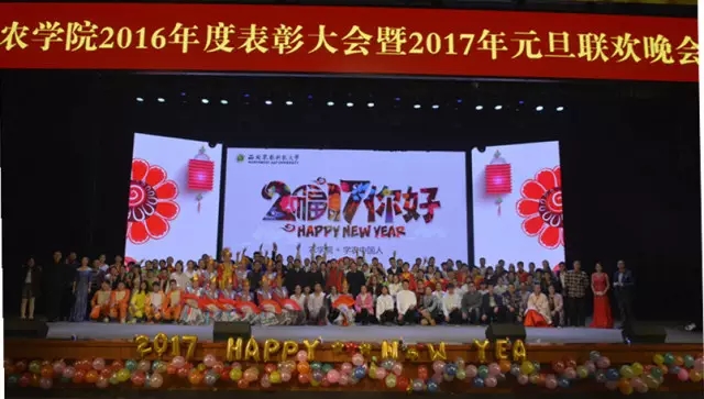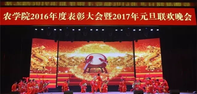 表彰会结束后,喜庆热闹的腰鼓表演拉开了2017年元旦联欢晚会的帷幕。晚会分为求学在陕西、榜样的力量和学农中国人等三个篇章,兼具观赏性和参与性,是视觉盛宴更是文化大餐。