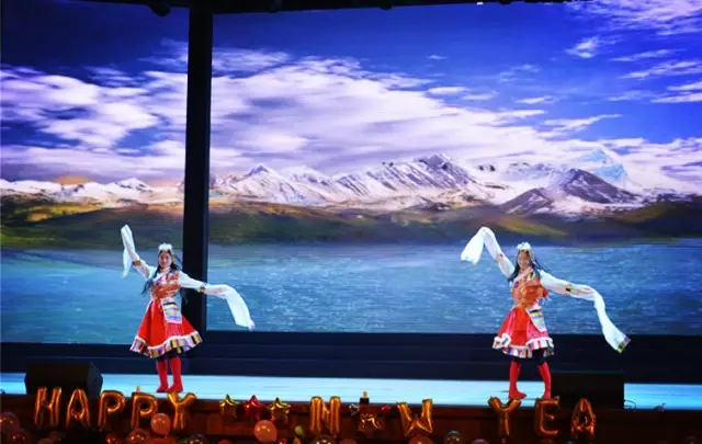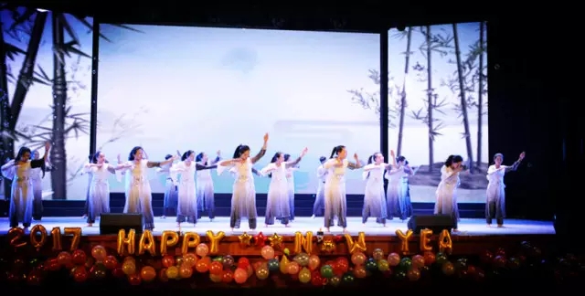 傣族舞蹈《竹林深处》、藏族舞蹈《扎西德勒》和维吾尔族舞蹈《纵情歌舞》,多民族员工伴着或抒情或欢快又极具民族特色的乐曲翩翩起舞,充分展示了各民族的特色与文华,体现了多民族和谐共处的美好。深情对唱《爱一点》,以细腻、婉转的歌声表达出少男少女对爱情的懵懂与向往。教职工舞蹈队表演的舞蹈《花木兰》将喜庆、祥和的节日气氛推向高潮。由两名教师领唱、三十名员工合唱的歌曲《国家》,将晚会的主题推向“热爱祖国”“先国后家”的最高点,晚会圆满结束。