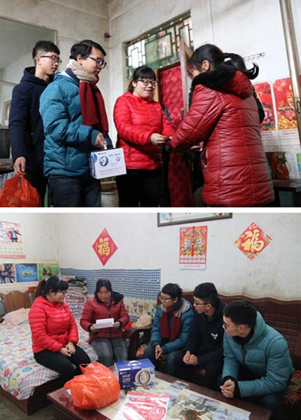 听说村里有两位村民近期身体状况不太好,小队成员特意买了一些礼品去探望他们,并送去了“福”字。在探望过程中,得知家里的大儿子2017年参加高考,小队成员热情询问孩子的学习情况,并为阿姨出谋划策教她如何帮助孩子度过艰难的备考时期,为了更好地在后期进行帮扶,小队成员把他们的联系方式都留下来,希望在半年的备考冲刺阶段能给他提供必要的帮助。