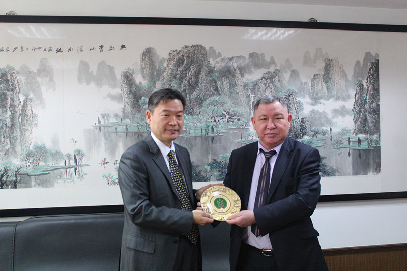 3月9日上午,李兴旺书记会见了Kenenbayev院士,他首先对Kenenbayev院士一行的来访表示热烈欢迎,介绍了公司的发展历史,尤其是人才培养、科学研究、农业科技推广等方面的特色。他希望双方能够借助重建丝绸之路经济带这一机遇和由公司发起成立的丝绸之路农业教育创新联盟为契机,开展更多合作,让丝绸之路成为互惠互利互通的友谊之路。Kenenbayev院士感谢公司对代表团一行的热情招待,他指出,由贵校发起的丝绸之路农业教育创新联盟成立意义重大,今后将加强双方之间联系,进一步深化交流合作。
