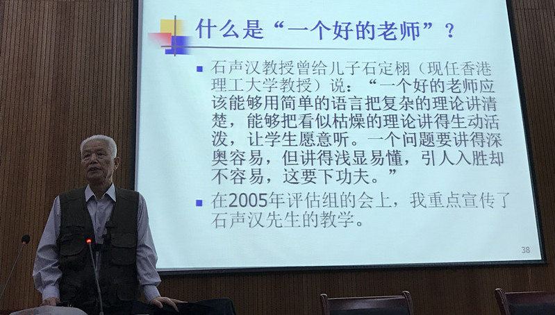他围绕具体的一堂课,细致生动地向大家讲解了怎样上好一堂课,教什么,怎么教,与大家分享了五十余年的教学经验。王迺信教授认为上好一堂课的两个大前提:一是要对教学有高度的敬业精神;二是有坚实的业务基础和较高的科学研究能力。与此同时,要更新教育理念、练好基本功、精心设计、认真备课,不断提高授课吸引力和感染力,提升教学水平、培养创新型人才。王迺信教授引用著名数学家的话“没有一种数学思想,以它被发现时的那个样子发表出来,一个问题被解决以后,相应地发展成一种形式化的技巧,结果使得火热的思考变成了冰冷的美丽”,谈到引导员工了解和发掘冰冷的美丽背后火热的思考是启发式教学的核心。王迺信教授教授讲到,就数学课程来说,火热的思考需要揭示概念、理论和方法的实质,剖析分析问题、解决问题的思想方法,培养发现问题、提炼问题的能力。讲到揭示概念理论实质时,王迺信教授现场为大家上了一段有关微积分思想方法的实质的课,并列举数学问题举例证明,引发现场观众掌声连连。