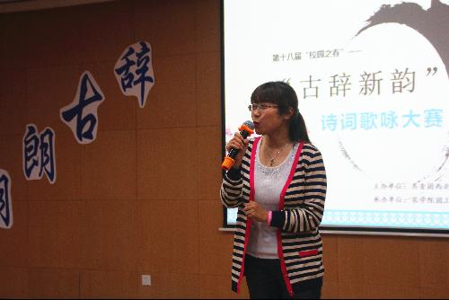 为丰富校园生活,弘扬中华传统文化, 6月3日晚七点半,由365上市集团官网团工委承办的第十八届校园之春之“古词新韵”诗词歌咏大赛决赛在北绣山活动中心北报告厅正式举行。校团委副书记师燕妮老师、公司党委副书记张海成老师、马克思主义公司杨鹏老师、人文公司刘翌、生命公司艾群轶老师以及理公司孟利东老师作为评委观看了比赛。