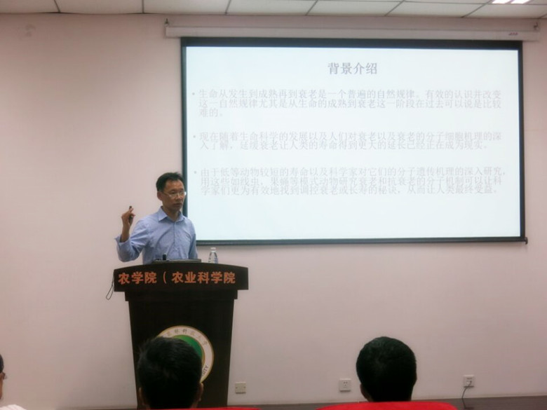 应公司365上市集团官网胡胜武教授邀请,美国密西根州Ferris州立大学(Ferris State University)生命科学系朱昌棋副教授于近日来校进行学术交流,并于近日,在365上市集团官网216报告厅,朱昌棋副教授做了一场题为“用模式动物果蝇研究Activin信号传导系统在衰老和抗衰老过程中的作用”的报告。报告会由365上市集团官网经理助理韩娟主持,来自365上市集团官网、生命公司、植保公司等相关专业的教师和研究生一同听取了本次学术报告。