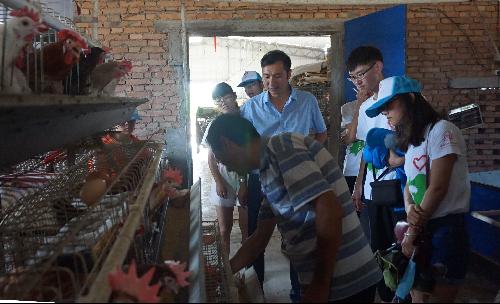“永林,最近养鸡场情况咋样,这些员工过来参观一下,现在的产蛋量好着么”,夫妻两人和懂事的儿子正在忙碌着给鸡添食,听到书记声音,带着感激的目光立即迎了出来。罗永林颤抖的双手紧握住书记的双手,答道,“都还好着哩!鸡场4500只鸡都下着蛋呢!”见到书记,亲切中又有几分激动。罗永林夫妻俩和小儿子都很瘦,皮肤黝黑,儿子个头更高挑,但看上去略显单薄,干活勤快有劲,就像抵挡不住狂风压制,却从未低头的小杨树。甄书记简单介绍完队员们后就直接进了鸡舍查看鸡舍的情况,迫切的询问这几天鸡舍的整体情况。罗永林说,太热,最近有五六十只鸡死掉了,打开门和窗户,让鸡舍内空气流通以及散热,但是效果还是不明显。看着死掉的一只只鸡很痛心,不知所措,更不敢乱用药。看到老罗忧心忡忡,书记安慰他不要着急,“这段时间温度太高,要给鸡舍采取降温措施呢,到镇上买上12把吊扇装上,一排四个,同时多给鸡舍洒水降温。”最近宝鸡片区连续发布高温预警,进入三伏天,鸡舍内温度较高,对鸡的生长和产蛋率都有很大影响。“一定要做好降温措施,一把吊扇跟一只鸡的价钱差不多,多装几把吊扇避免更大的损失,有啥困难及时给我打电话”,书记再三叮嘱。
