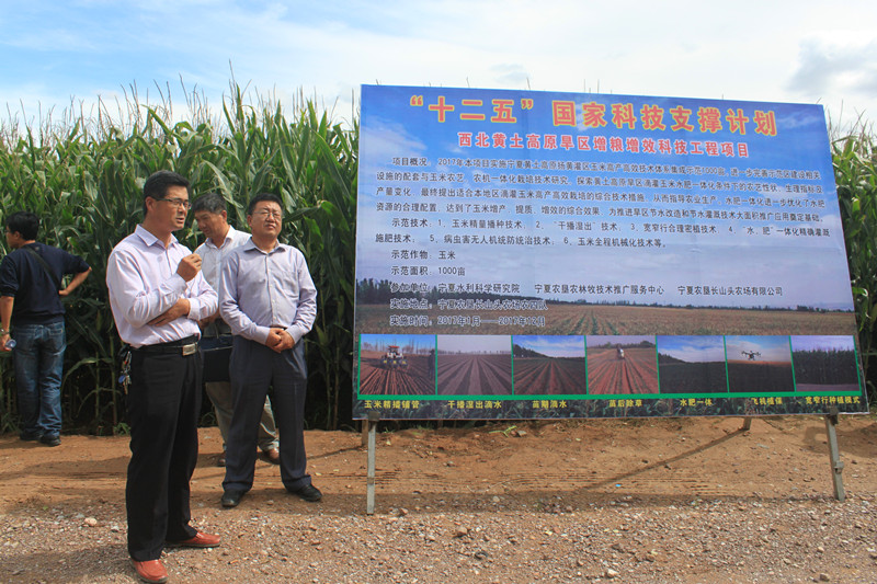 会议期间,与会人员赴宁夏水科院承担的课题研究与示范基地同心县旱作农业节水试验站、宁夏农垦长山头农场等地现场观摩了玉米水肥一体化节水灌溉装备及技术示范、玉米滴管栽培管理技术、玉米节水高效关键栽培技术及种植模式等。