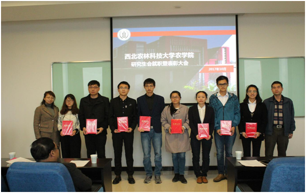 2017年10月17日院研究生会在农科楼442会议室召开第六届研究生会就职暨表彰大会。公司党委副书记张海成老师、研究生秘书赵普庆老师、学工秘书彭小凤老师、研究生辅导员出席大会。会议由研究生会副主席陈方振同学主持,全体研究生会成员参加。