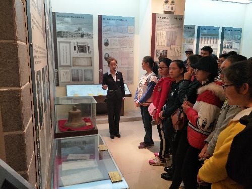 同学们认真听讲解员的介绍
