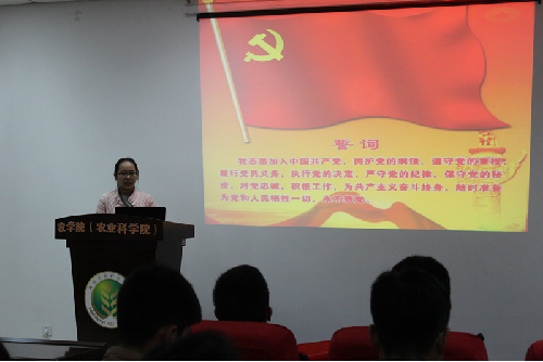 会上,研究生第一党支部书记陈方振同志带领大家重温入党誓词,全体党员举起右拳,庄严宣誓。乔文静同志领学了十九大精神,主要学习内容有:十个历史性成就,两个重大判断,历史使命与“四个伟大”,十四个坚持,两个重要时期,9个方面理论分析和政策指导。视频简要观看十九大召开以及8900万党员必读十九大报告提出的新要求。
