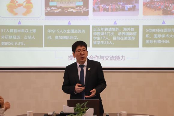 经理单卫星教授、副经理韩娟副教授分别就两个学位授权点从基本情况、目标标准、基本条件、人才培养、质量保证与教学支撑、持续改进计划等方面做了详细汇报。
