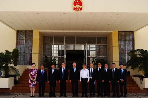 2018年4月13日,在抵达受援国圣多美和普林西比之后的第二天,第二期援圣普农牧业技术项目组全体成员,会同第一期援圣普组留守专家,在组长路阳明的带领下,于当地时间上午10点到我国驻圣多美和普林西比共和国大使馆,拜会了王卫大使,听取王大使对专家组在圣普工作的有关指示。高金宝参赞及驻圣普使馆经商处侯莹秘书也一同出席。