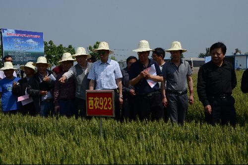 与会人员首先在南阳小麦试验示范站对两个园区的小麦品种、品系和承担的国家试验进行了现场观摩。观摩会上展示的既有南阳市生产上的主推品种西农979,也有近年来通过国审和省审的小麦品种西农509、西农511、西农585、宛麦21等,以及正在参加区域试验、有望审定推广的西农238、西农8079、西农99、西农369、西农100、西农388、宛麦47和宛育1号等一批具有潜力的后续品系。