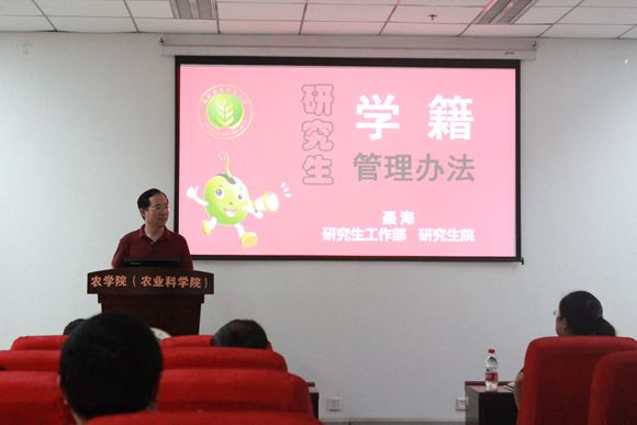 在培训会上,王军处长从《导师岗位职责与管理办法》出台的背景意义、导师岗位职责和权力、奖励与问责以及实践中经常遇到的一些问题进行了解读,并就作物学近年来学位论文质量情况探讨和交流。