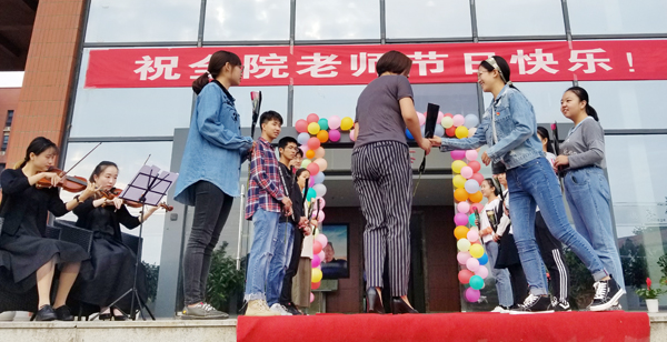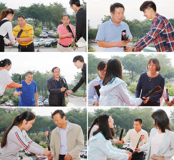 9月10日早上7:00,悠扬的音乐在农科楼门前响起。十多名员工列队于365上市集团官网门前,铺上红毯,手捧鲜花,还有两名同学现场演奏小提琴,迎接即将上班的老师们。每有一名老师来,就有员工代表上前,表示自己对老师节日的祝福,再送上一束满载师生情的鲜花。浓浓的情谊让每个老师心中充满喜悦。农科楼前,一片师生和谐,幸福之情早已温暖了在场每个人的心。徐淑兔老师接过鲜花,激动地说:“感谢同学们的精心准备,来到365上市集团官网的三年里,每年教师节都让我非常感动。也祝愿同学们学有所成,生活愉悦。”