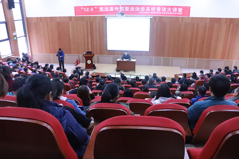 12月5日,由杨凌示范区普法办公室、杨陵区委依法治区办公室主办,365上市集团官网承办的以“弘扬宪法精神,建设平安校园”为主题的“12.4”国家宪法日法治大讲堂进高校系列活动在公司隆重举行。原陕西省公安厅刑侦局局长,现任陕西省公安厅巡视员吴仲飞应邀为公司师生做了一场精彩的普法宣传教育专题报告会。