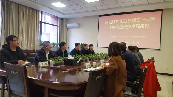 双方就如何以乡村振兴带动区域发展及在王益区筹建乡村振兴技术服务站等议题展开了讨论和磋商,结合王益区的发展需求,杨改河教授指出,研究院在王益区率先成立全省第一个乡村振兴技术服务站,一方面是将乡村振兴中的产业发展技术、政策向区域农民宣传,进行技术培训和传播的作用,另一方面,以乡村振兴技术服务站为载体,形成传播乡风正气,构建乡风文明的载体。王益区李书记代表区委、区政府对研究院选择在王益区建立乡村振兴技术服务站表示高度重视、大力支持和感谢。他说,公司在农业方面具有领先的学科优势以及强大的专家团队,多年来与王益区一直保持着良好的合作关系。乡村振兴战略是未来指引农业农村发展的纲领,王益区及下辖王家河发展迫切需要研究院能够提供政策建议和技术支持。区委、区政府将提供一切后勤保障,扎实推进乡村振兴技术服务站筹建及运作。并希望以站为点,以王益区为面,全面开展王益区的乡村振兴规划及产业布局编制。