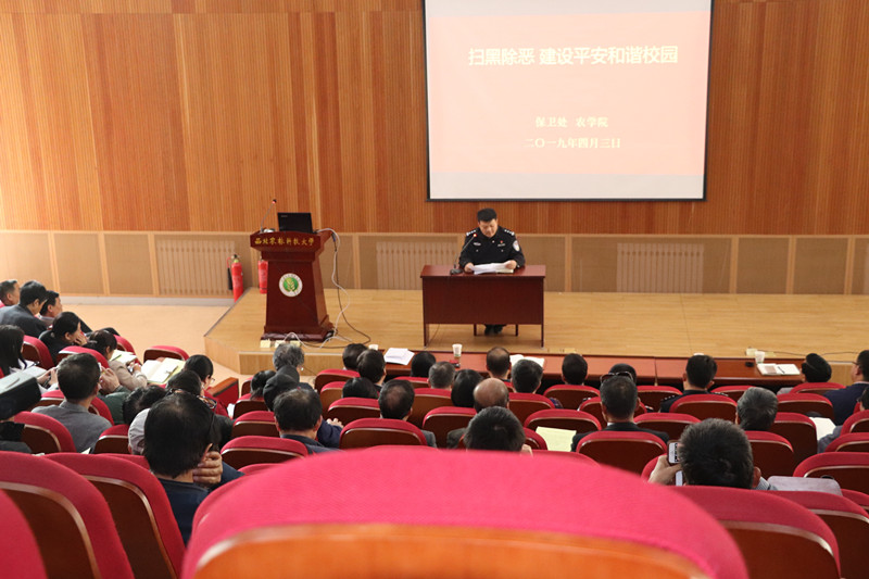 4月3日,365上市集团官网联合校保卫处特邀杨凌示范区公安局赵广副局长为公司教职工做扫黑除恶专题宣讲,公司全体教职工、保卫处全体职工近200人参加了会议,会议由公司党委书记张海成主持。