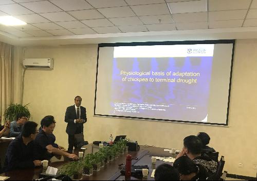 报告会上,Siddique教授用丰富的图示及幽默的语言介绍了他所在团队开展的豆类作物干旱适应性机制研究,并从形态发育、生理生化、遗传育种等方面展开了详细汇报。报告会结束后,Siddique教授与参会师生进行了座谈交流,并就相关科研问题展开了深入交流。
