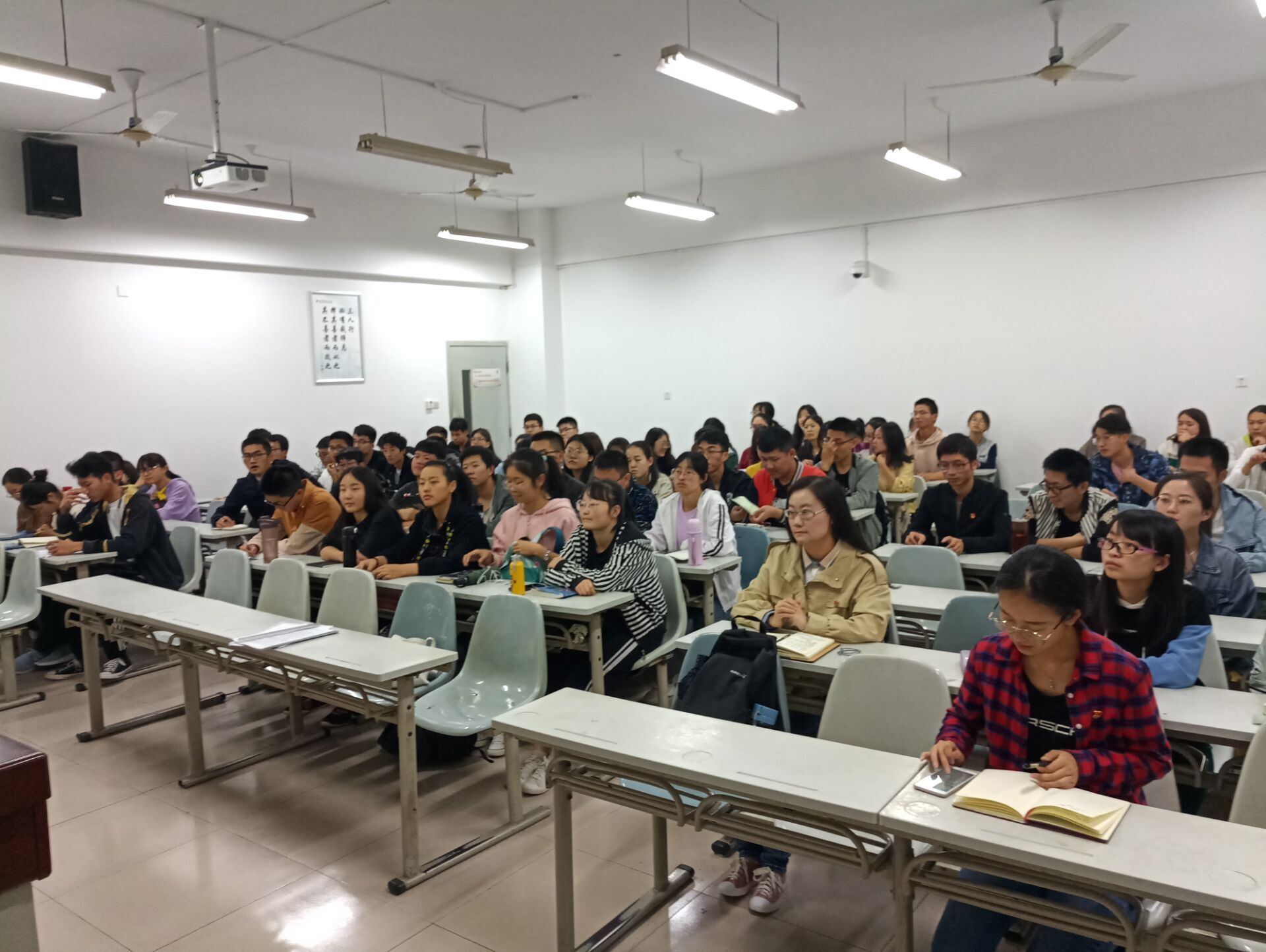 同学们认真听了学长学姐们的分享,并积极提出问题,党员和群众之间就社会实践、专业前景、读研与就业的选择等大家关注的问题进行了讨论,现场气氛轻松活跃。